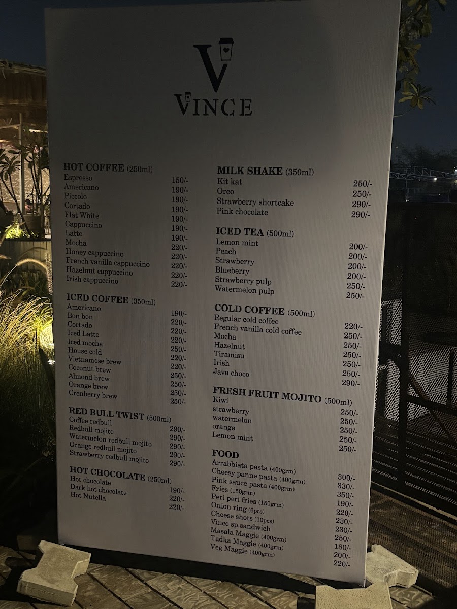 Nestled on Karnavati Club Rd, Vince Cafe is a culinary gem in Ahmedabad, perfect for cozy evenings and casual hangouts. The open café concept, especially enchanting under the night sky, provides a comforting vibe enhanced by dim lights and a dark-themed decor.